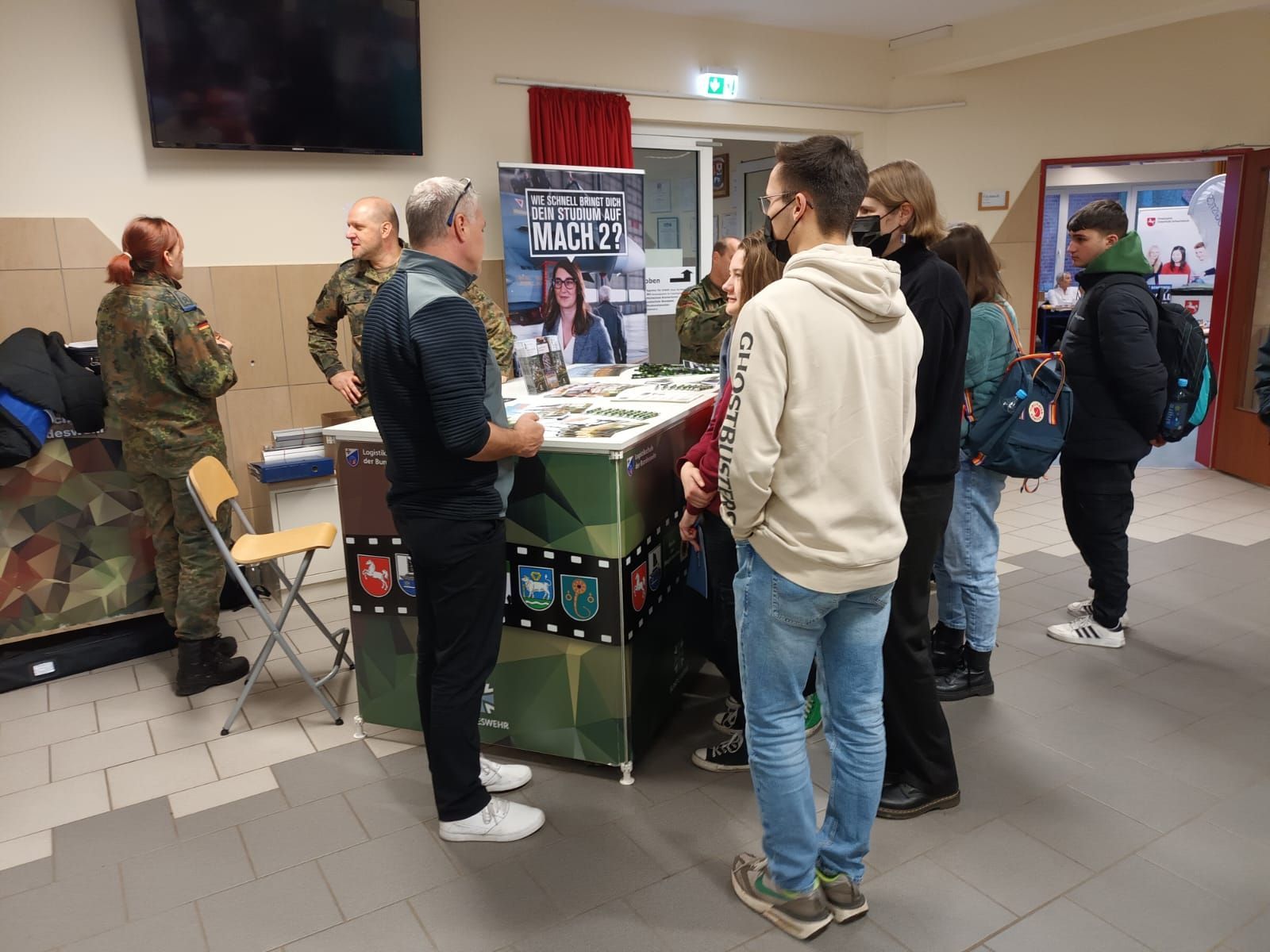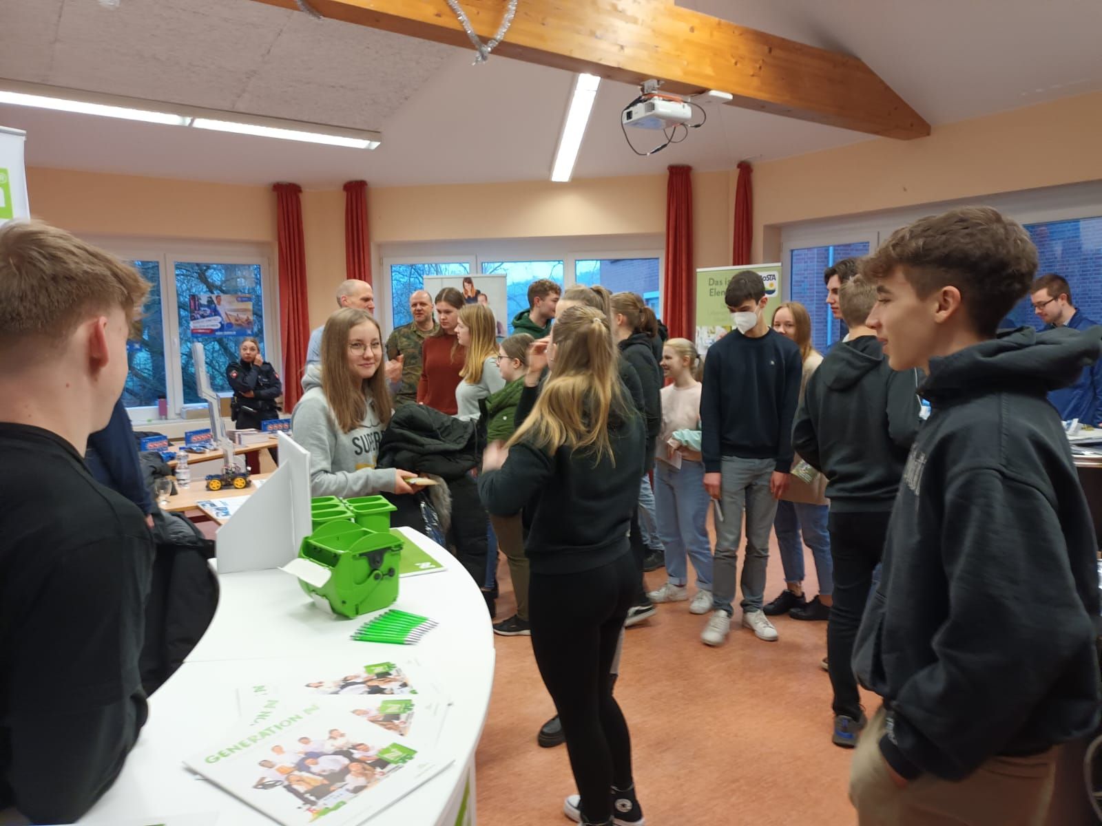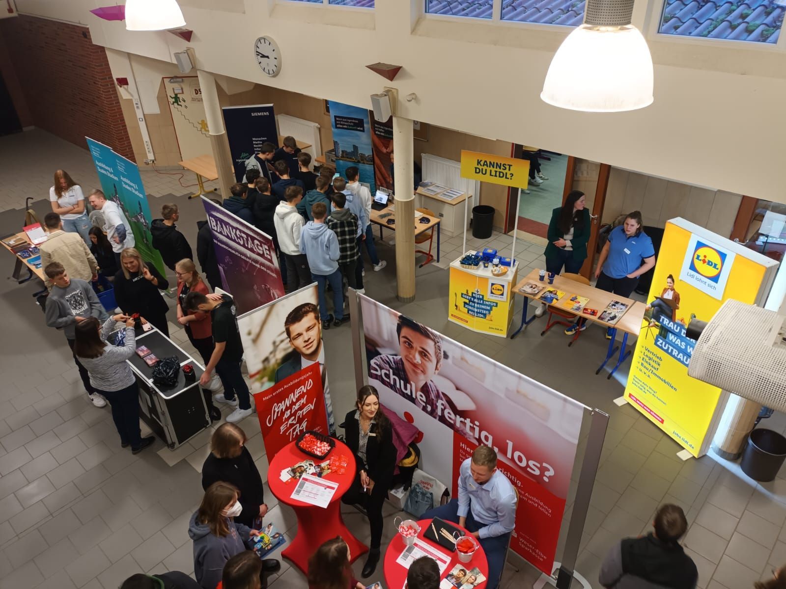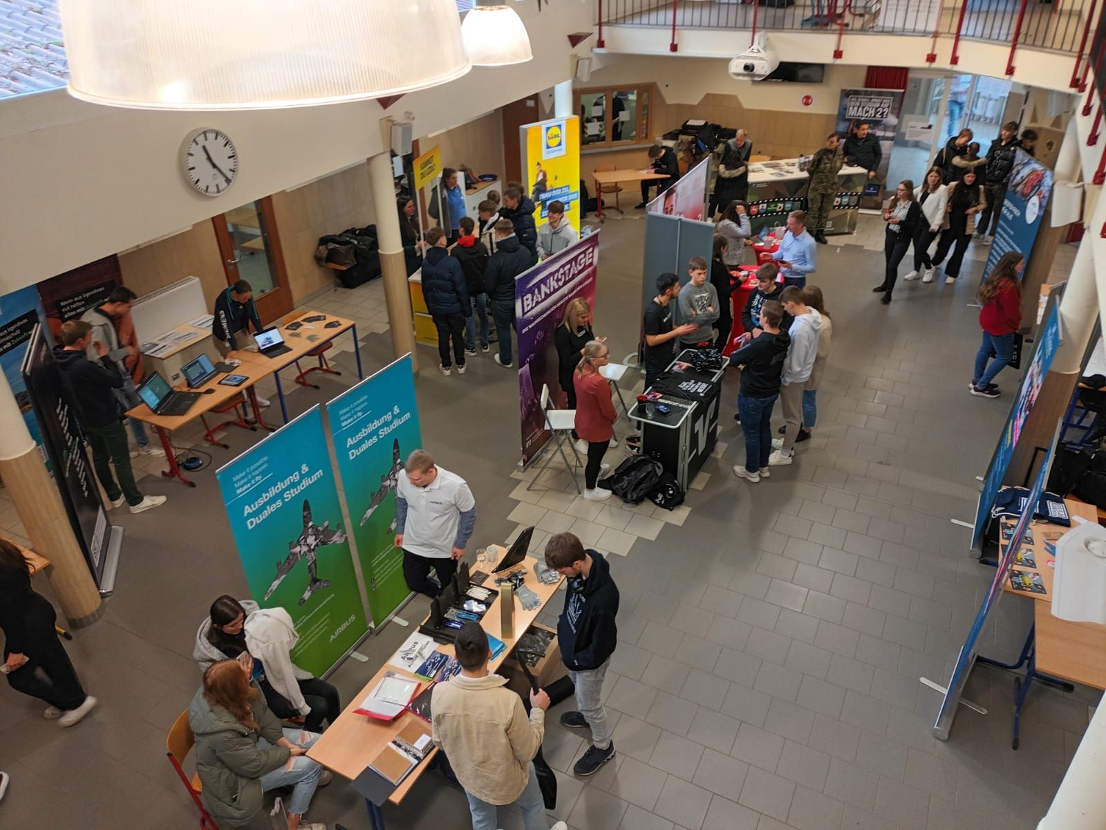 Nach zwei Jahren Pause war es endlich wieder soweit. Der Markt der Möglichkeiten, die Berufsbildungsmesse der Waldschule Hagen-Beverstedt, konnte stattfinden. Eine Vielzahl von Austellern fand sich am 26.01.2023 im D-Gebäude am Standort Hagen ein. Neben großen Unternehmen, wie z.B. Airbus, Siemens, die Deutsche See, Mercedes oder BLG, gab es auch eine Reihe von Vertretern des öffentlichen Dienstes, wie z.B. Polizei, Landkreis Osterholz, Zoll oder Bundeswehr. Die Schülerinnen und Schüler der 10. bis 13. Klassen hatten jede Menge Möglichkeiten, sich an den Ständen zu informieren und auch einige ehemalige Schülerinnen und Schüler unserer Schule zu treffen, die jetzt in diesen Unternehmen tätig sind. Zusätzlich gab es eine Reihe von Vorträgen der einzelnen Aussteller und auch Hochschulen nutzen die Möglichkeit sich vorzustellen.